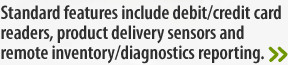 That's why we decided to employ the highest-quality USI snack/drink combo machines on the market and load them with high-tech features to ensure smooth operation and reliability. In addition to debit/credit card readers and infra-red delivery assurance technology from iVend, our machines are also equipeed with remote diagnostics and inventory reporting capabilities, which will alert us via the internet if there is a machine that requires service. This helps ensure that your favorite products will always be fresh, fully stocked and vending properly!